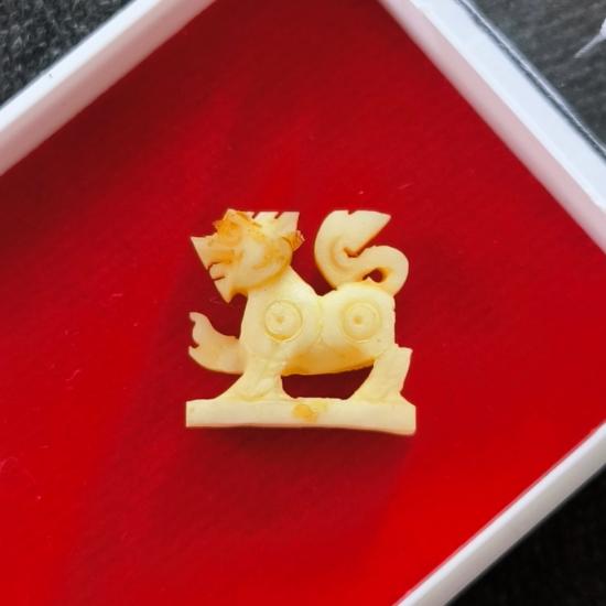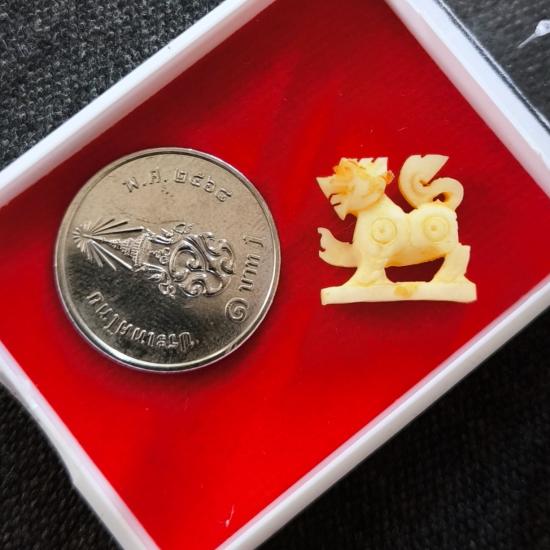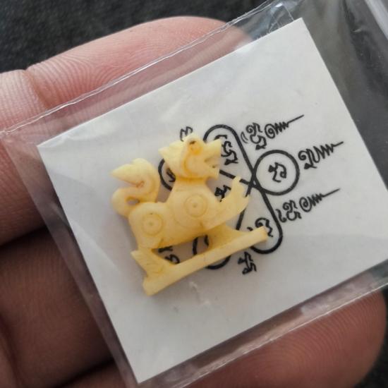 สิงห์งาแกะ(แท้) หลวงพ่อสาคร วัดหนองกรับ ระยอง ( เป็นงาช้างเก่า สมัยหลวงพ่อยังอยู่โดยทางวัดนำมาแกะ แล้วออกบูชา เมื่อปี 2566 ) สร้าง 199 ตัว ขนาดความสูง x กว้าง 1.5 ซม พร้อมกระดาษยันต์เดิมๆรับประกันตามก
