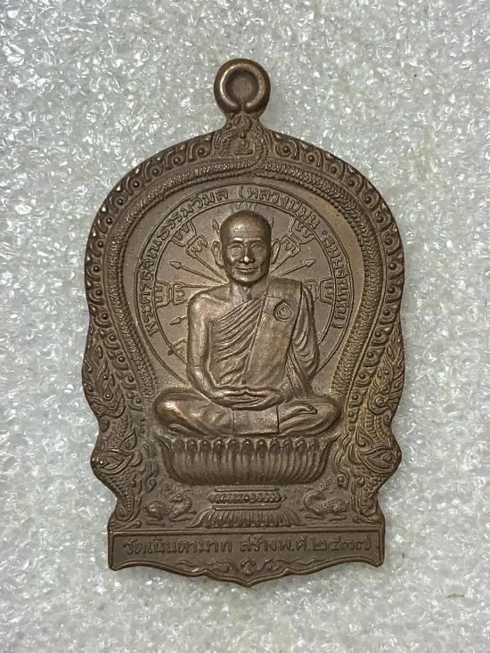 ((แดงที่100))เหรียญนั่งพาน หลวงปู่ม่น วัดเนินตามาก รุ่นเมตตา เนื้อทองแดง ปี2537