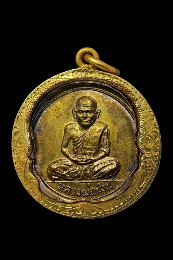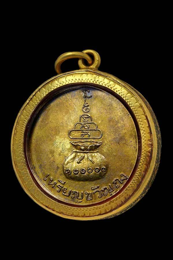 เหรียญขวัญถุง หลวงพ่อเงิน วัดบางคลาน เนื้อทองเหลืองกระไหล่ทอง ปี 2515 เลี่ยมทองหนาๆ