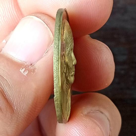 แดงเคาะแรก เหรียญหลวงปู่ทวด รุ่นที่ระลึกสร้างพระตำหนักปากพนัง (สร้างบ้านให้พ่อ) เนื้อทองฝาบาตร พิมพ์ใหญ่ |
