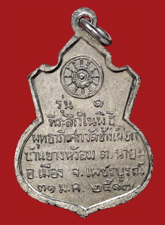 เหรียญหลวงพ่อทบ คอน้ำเต้า เนื้ออัลปาก้าชุบนิเกิ้ล วัดช้างเผือก ปี 2517 เพชรบูรณ์