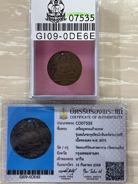 (เคาะแดง2900) +บัตรสมาคม เหรียญพระแก้วมรกต วัดพระแก้ว 2475