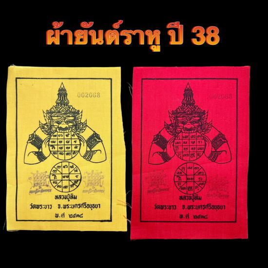 ผ้ายันต์ราหู ปี 38 สีเหลือง-สีเเดง หลวงปู่ทิม วัดพระขาว มือ 1 ยกคู่ ไม่เคยผ่านการใช้ครับ