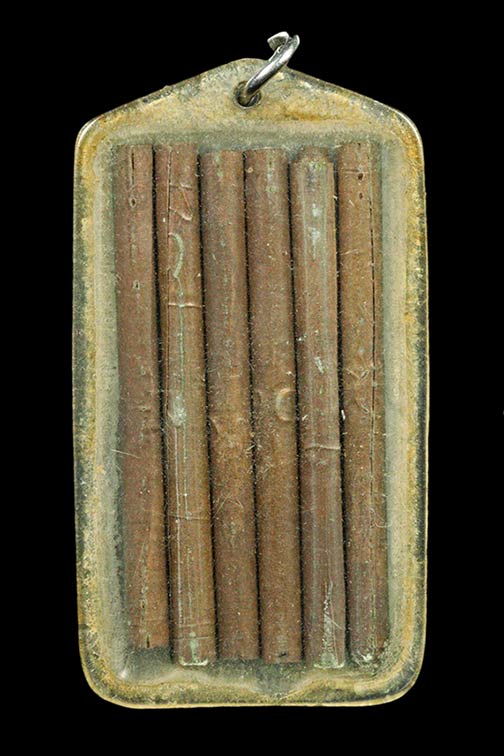 ตะกรุด 6 ดอก เนื้อทองแดง 1.5 นิ้ว เลี่ยมเก่า ไม่ทราบที่ |
