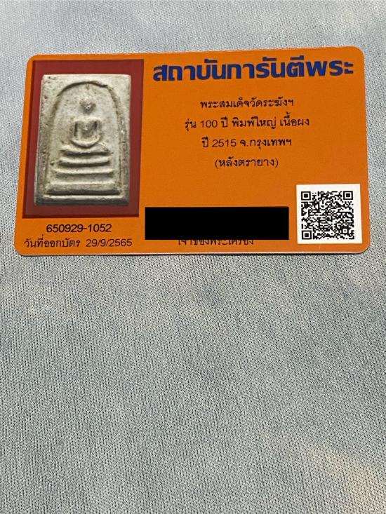 พระสมเด็จวัดระฆังฯ รุ่น100ปี พิมพ์ใหญ่ เนื้อผง ปี2515 จ.กรุงเทพฯ หลังตรายาง พร้อมบัตรรับรองฯ *พิจารณาแล้วขอคนที่พร้อม จะได้ไม่เสียเวลาทั้ง 2 ฝ่ายครับ
