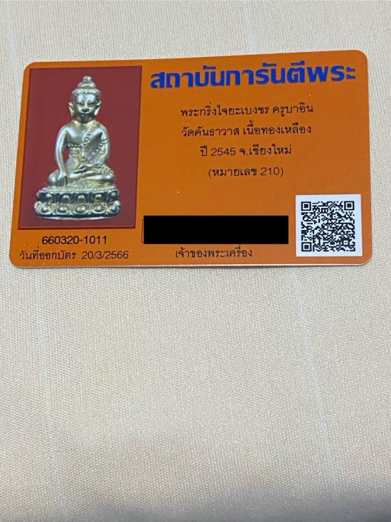 พระกริ่งไจยะเบงชร ครูบาอิน วัดคันธาวาส เนื้อทองเหลือง ปี2545 จ.เชียงใหม่ เลข210 พร้อมบัตรรับรองฯ *พิจารณาแล้วขอคนที่พร้อม จะได้ไม่เสียเวลาทั้ง 2 ฝ่ายครับ