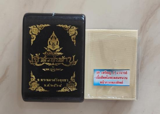 เหรียญ2อาจารย์ หลวงปู่ทวด-หลวงปู่ดู่ รุ่นเจ้าสัวพันล้าน (บอย ท่าพระจันทร์) เนื้อสัตตโลหะผสมชนวนหน้ากากทองทิพย์ โค๊ตเลข ๒๑๒๙ กล่องเดิม พร้อมกรอบเงินผสม