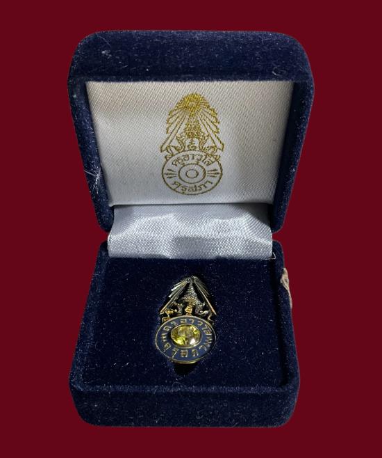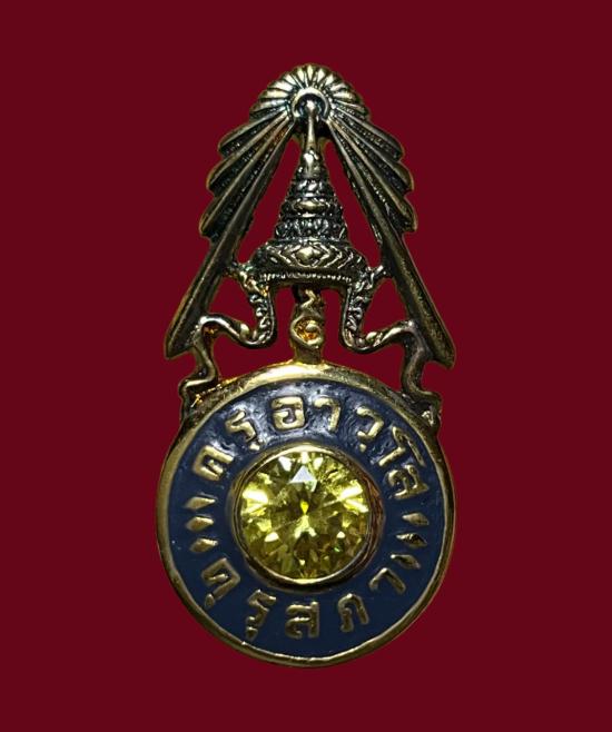 เข็มกลัด ครูอาวุโส คุรุสภา เนื้อเงิน ฝังพลอย ชุบทอง ในหลวง ร. 10 ทรงพระราชทาน ให้กับครูอาวุโส