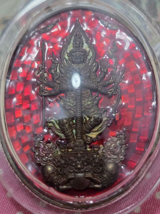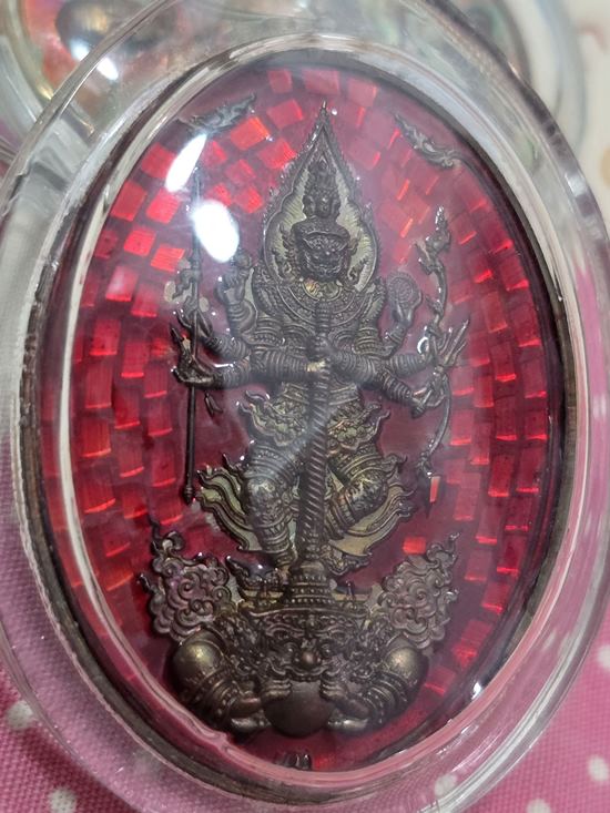 เหรียญท้าวเวสสุวรรณ 8 กร สำนักม่อนพญาอินทร์ ลำปาง + มหายันต์ทั้ง5 ครูบาจันทร์ วัดน้ำแป้ง ตอกโค๊ด-เลข 15**** เนื้อทองแดงลงยาแดง สวยวิ๊งๆ เลี่ยมพลาสติกเก็บผิว