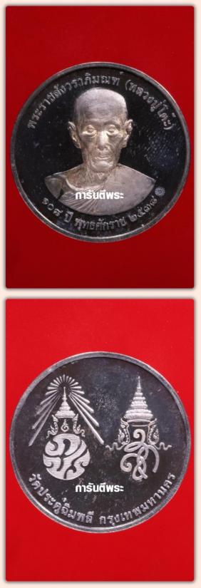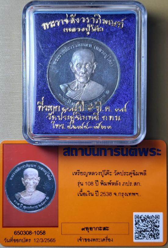 (((((((((+++++++++*** ที่ระฤก ๑๐๘ ปี พ.ศ.๒๕๓๘ เหรียญรูปเหมือน หลวงปู่โต๊ะ วัดประดู่ฉิมพลี พิมพ์หลังพระปรมาภิไธยย่อ ภปร. สก. เนื้อเงิน สร้างจำนวน ๑,๐๘๐ เหรียญ