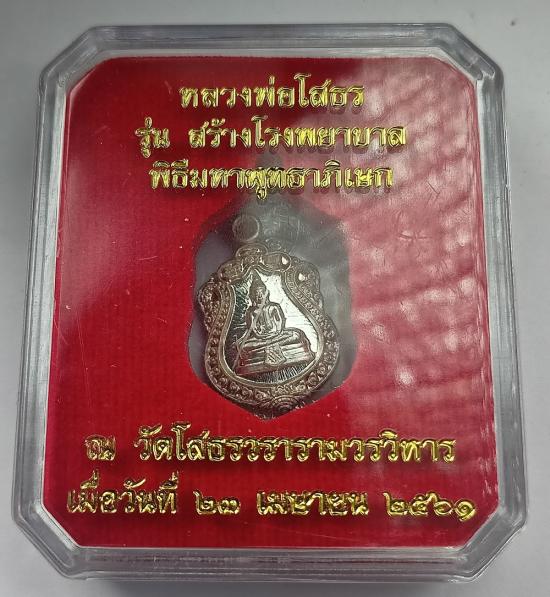 เหรียญเสมา หลวงพ่อโสธร รุ่นสร้างโรงพยาบาล ปี61 (สมเด็จพระสังฆราชทรงประทานพระอนุญาติและทรงเสด็จจุดเทียนชัย) เนื้อเงิน"พิมพ์เล็ก" เบอร์ 344 พร้อมกล่องเดิมครับ (ราคาจอง 1199บาท)