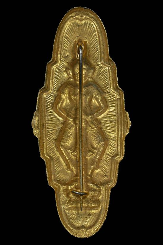 เข็มกลัดท้าวเวสสุวรรณ วัดเกตุมดีศรีวราราม จ.สมุทรสาคร รุ่นแรก พิมพ์ใหญ่ เนื้อทองแดงกะไหล่ทองสวยๆ..ลพ.สุด..วัดกาหลง..ปลุกเสก