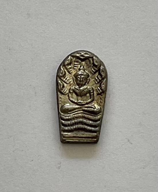 พระปรกใบมะขามหลวงปู่แหวนออกวัดสัมพันธวงศ์ ปี 2520 เนื้อเงิน