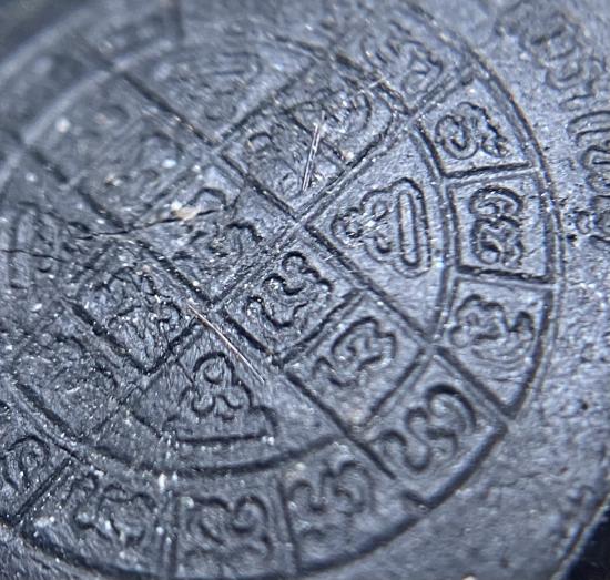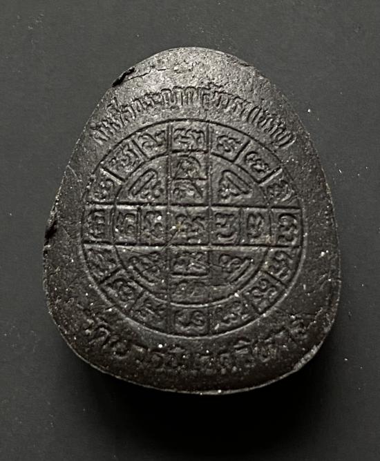 พระปิดตายันต์ดวงเล็ก ปี2523 สมเด็จพระญาณสังวร (เจริญ) วัดบวรนิเวศ_(เนื้อผงใบลานดำปลดหนี้)_พิมพ์หนา_มีเส้นเกศา_