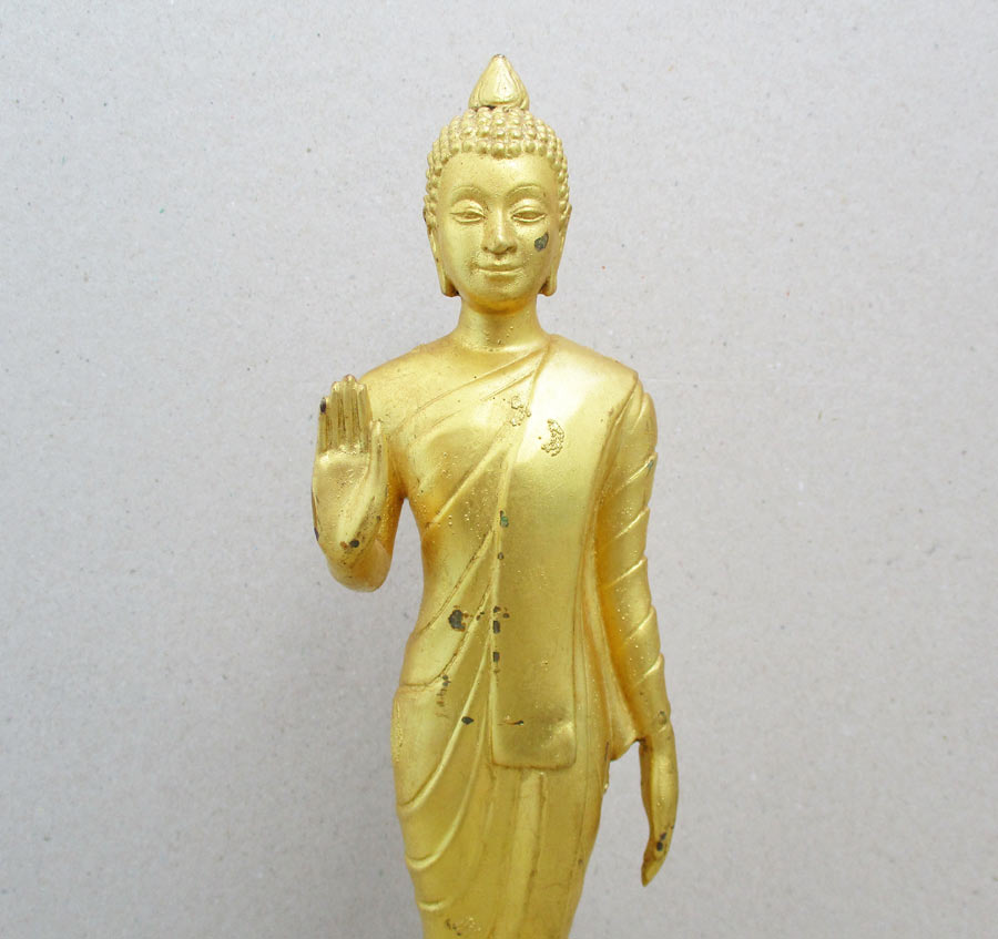 เนื้อโลหะ ปิดทองแท้ผิวแห้งหิ้ง สภาพพุทธศิลป์สวย สมบูรณ์ วรรณะเหลืองอร่ามตาทั้งองค์ !!