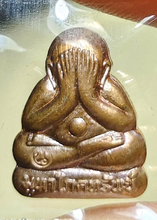 พระปิดตาหลังยันต์ (มหาโภคทรัพย์) เนื้อทองแดงผสมชนวน หลวงพ่อนัส วัดอ่าวใหญ่ *ตอกโค้ด "น" ตอกหมายเลข*