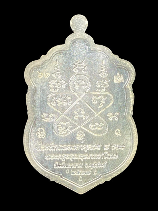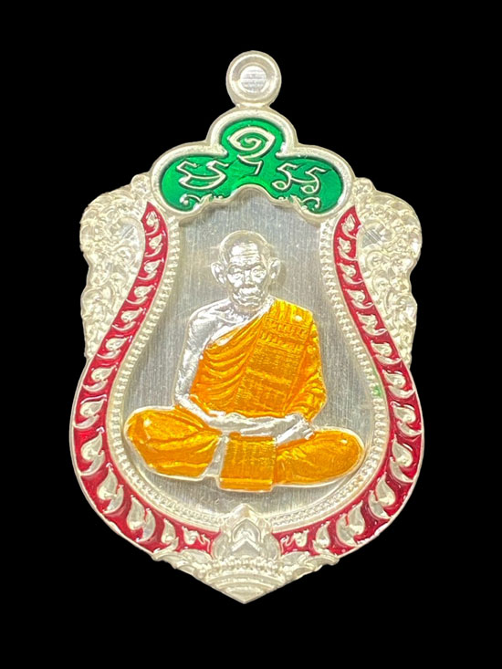เหรียญเสมา ครบ ๘ รอบ ๙๖ ปี หลวงปู่โฉม อรุโณ วัดอัมภาราม จังหวัด บุรีรัมย์ ๒๕๖๗ เนื้อเงิน ปะฉลุ ๓ ชิ้น ลงยา ๓ สี หัวเขียว ขอบแดง องค์ลงยาจีวร หมายเลข ๖๒