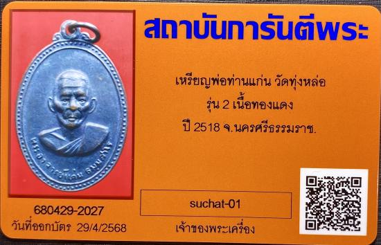 เหรียญพ่อท่านแก่น วัดทุ่งหล่อ จ.นครศรีธรรมราช เนื้อทองแดง ปี2518 จ.นครศรีธรรมราช