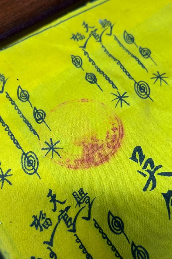 ผ้ายันต์เซียนแปะโรงสี ขนาดใหญ่พร้อมกรอบไว้บูชาติดผนังบ้านได้เลยครับ ขนาดรวมกรอบ กว้าง 12.6 นิ้ว สูง 17.4 นิ้ว สวยๆครับ ผมไม่ทราบที่ วัดใจขายทุกราคาจบเท่าไหนเอาเท่านั้นครับ |