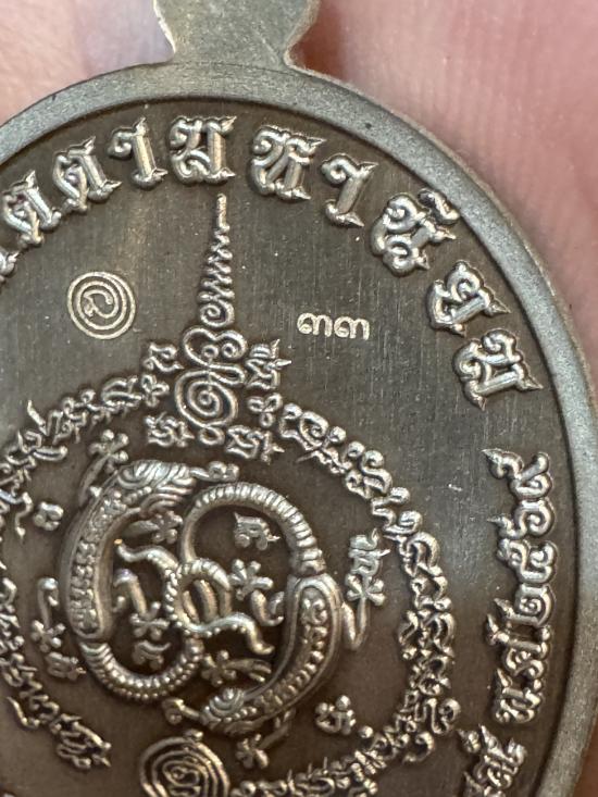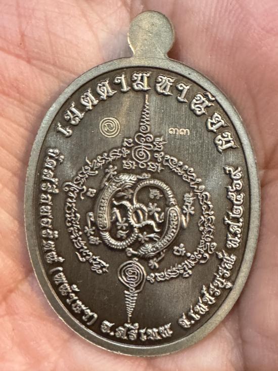 เหรียญหลวงปู่ฝั้น วัดศรีลมอรัตย์ เพชรบูรณ์ รุ่นเมตตามหานิยม เนื้ออัลปาก้าซาติน จีวรเพ้นท์ลาย หมายเลข 33