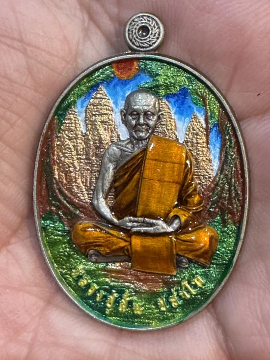 เหรียญหลวงปู่ฝั้น วัดศรีลมอรัตย์ เพชรบูรณ์ รุ่นเมตตามหานิยม เนื้ออัลปาก้าซาตินจีวรส้ม หมายเลข 33