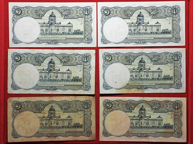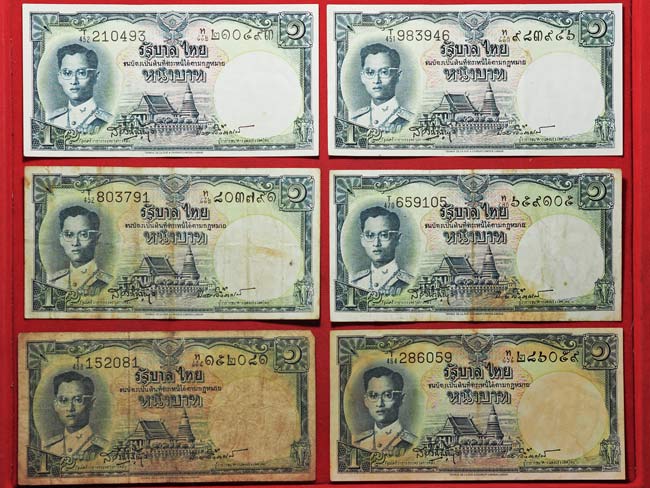 ***ชุด 6 ฉบับ***ธนบัตร 1 บาท ***ลายเซ็น ส.วินิจฉัยกุล , ป๋วย อึ้งภากรณ์***