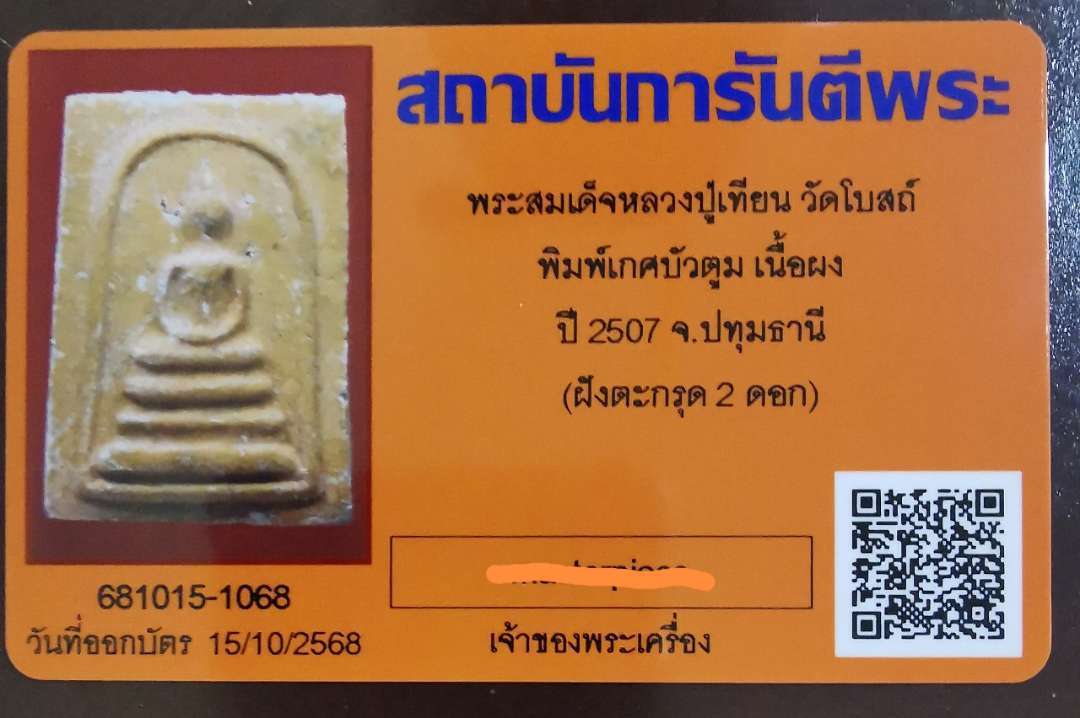 สมเด็จเกศบัวตูม หลังรูปเหมือน ฝังตะกรุด 2 ดอก หลวงปู่เทียน วัดโบสถ์ ปี 2507 จ.ปทุมธานี สวยๆ พร้อมบัตรรับรอง