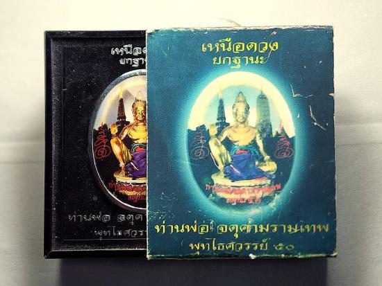 วัดพุทไธศวรรย์ ล็อกเก็ตนายพลเหนือดวง หมายเลข 107 สร้างปี 2550 หุ้มด้วยแผ่นโลหะเงิน อุดผงพรายกุมาร ฝังพระปรกใบมะขาม