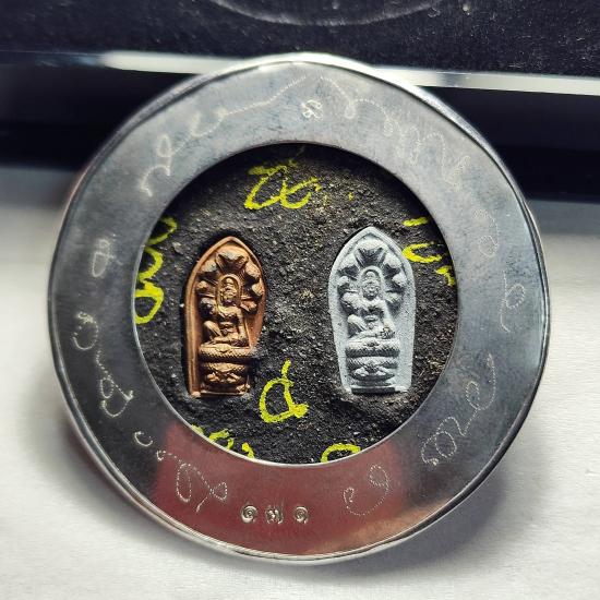 วัดพุทไธศวรรย์ ล็อกเก็ตนายพลเหนือดวง หมายเลข 171 สร้างปี 2550 หุ้มด้วยแผ่นโลหะเงิน อุดผงพรายกุมาร ฝังพระปรกใบมะขาม