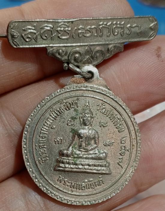 เหรียญพระพุทธนิมิตต์ หลังพระพุทธชินราช ที่ระลึกงานผูพัทธสีมา วัดแม่เทียบ พ.ศ.2517 พร้อมเข็มกลัดเดิม!