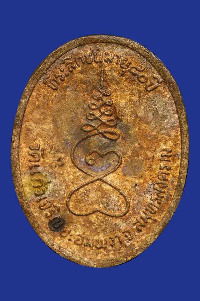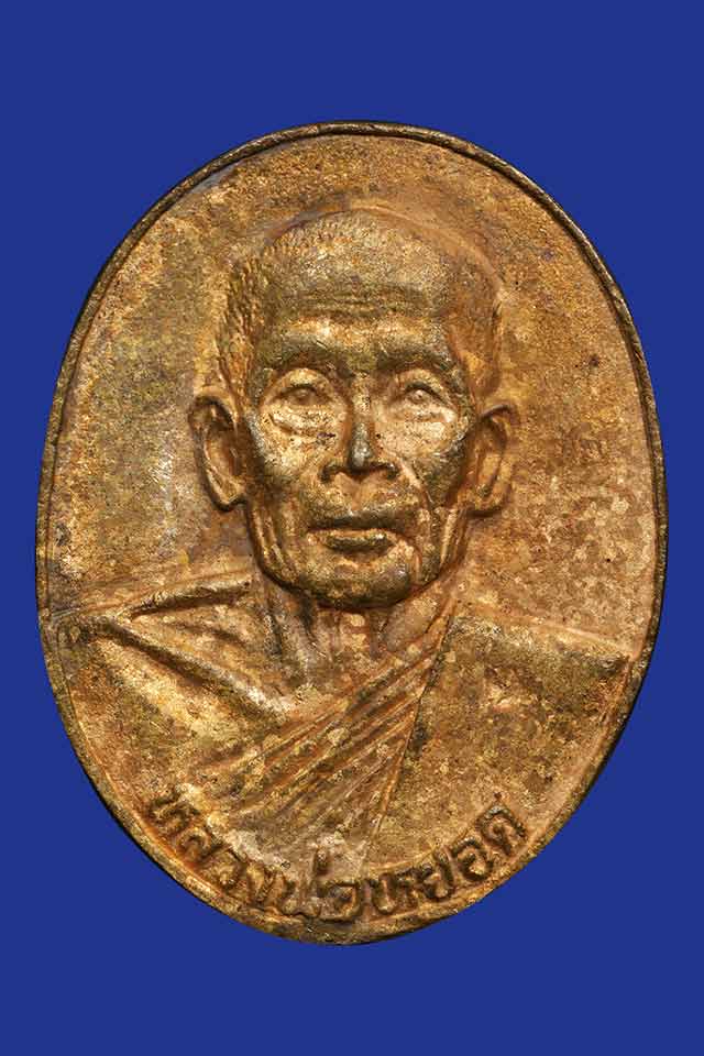 เหรียญหล่อเนื้อทองฝาบาตร หลวงพ่อหยอด วัดแก้วเจริญ อายุ 80 ปี ปี 2535 สวยๆ