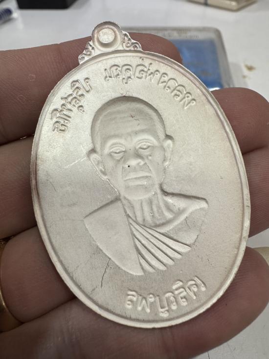เหรียญเจริญพรล่าง91 พิมพ์จัมโบ้ ปี2557 เนื้อเงิน ลงยาสีเขียว หลังแบบ no.4 มีกล่อง(เลขวันเกิดหลวงพ่อ)