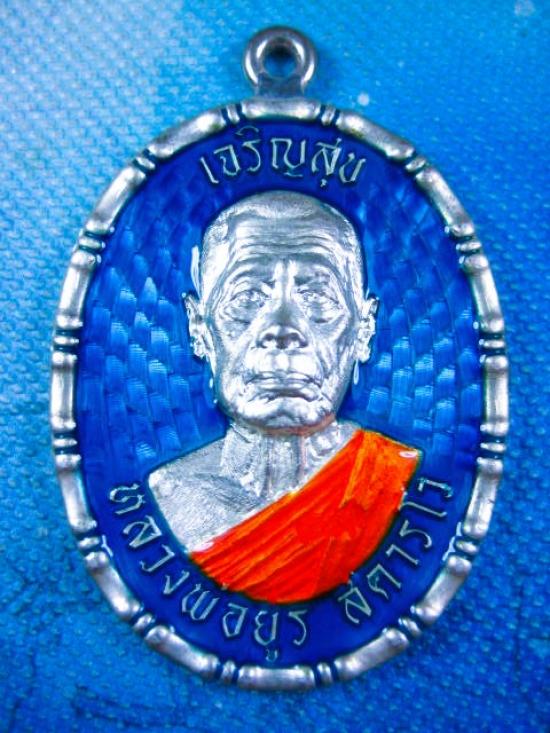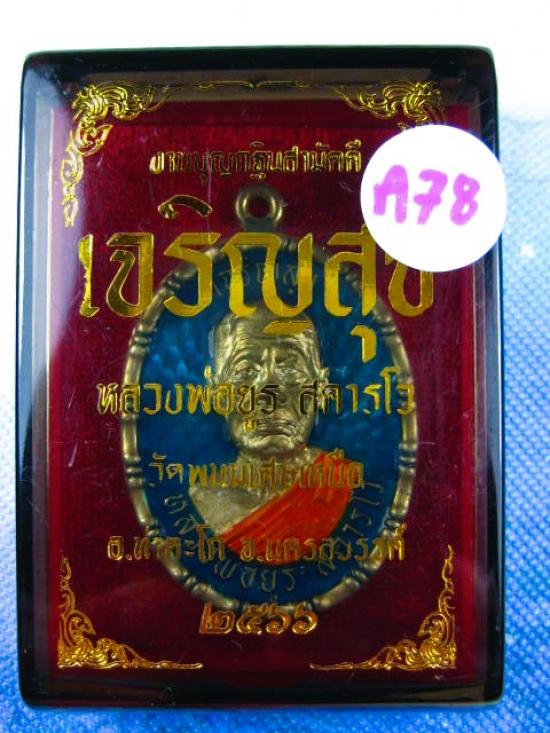 ### เหรียญ เนื้อเงิน ลงยาฟ้า ### เหรียญเจริญสุข งานบุญกฐิน เนื้อเงิน ลงยาฟ้า น้ำหนักเหรียญ 15.35 กรัม หลวงพ่อยูร สคารโว วัดพนมเศษเหนือ จ.นครสวรรค์ ปี 2566 กล่องเดิม *** (---A78---)