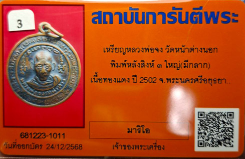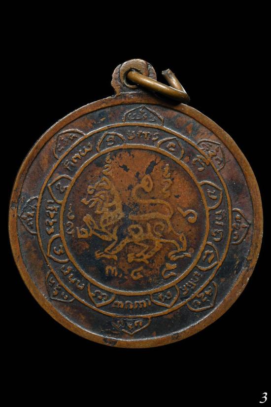 เหรียญกลม หลวงพ่อจง วัดหน้าต่างนอก พิมพ์หลังสิงห์ (๓ ใหญ่ มีกลาก) เนื้อทองแดง ปี 2502