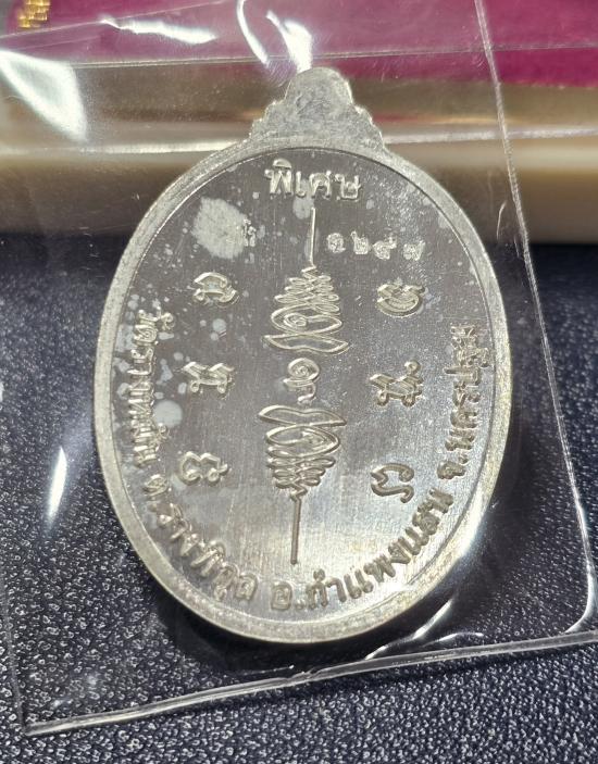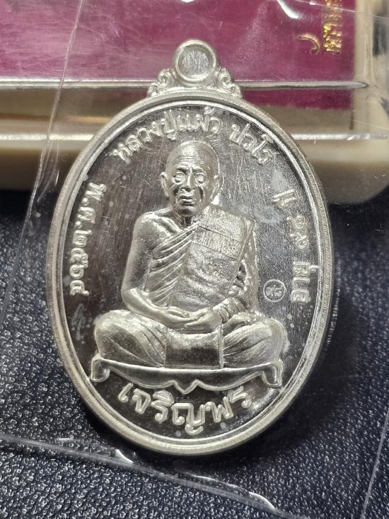 เหรียญเจริญพรล่าง หลวงปู่แผ้ว วัดรางหมัน เนื้อเงิน no.3247 สวยๆ พร้อมกล่องเดิม