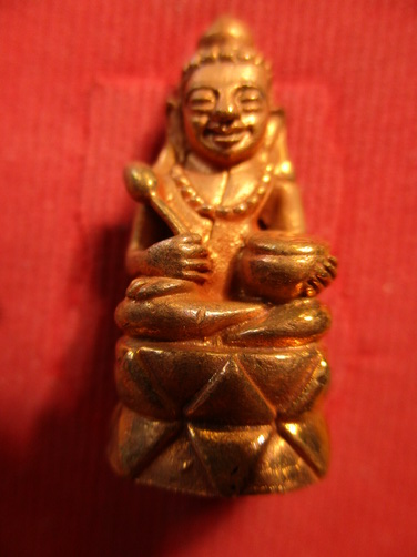 กริ่งตั๊กแตนพระอูปคุปต์มหาลาภนั่งบัวเนื้อทองแดงนอกขัดเงา หลวงปู่คำพันธ์ วัดธาตุมหาชัย จ.นครพนม ปี 2545 ผิวไฟสวยมากๆ