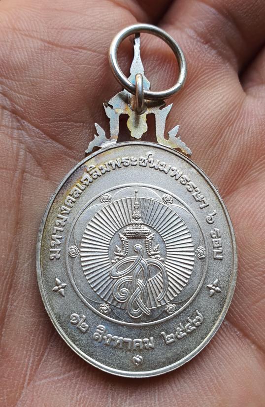 เหรียญแพรแถบ ในหลวง ร.๙ - สมเด็จพระราชินี มหามงคลเฉลิมพระชนมพรรษา ๖ รอบ (เนื้อเงิน)