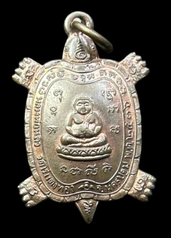 เหรียญพญาเต่าเรือน หลวงปู่หลิว วัดไร่แตงทอง นครปฐม ปี2536 รุ่นไตรมาสเล็ก เนื้อนวะ