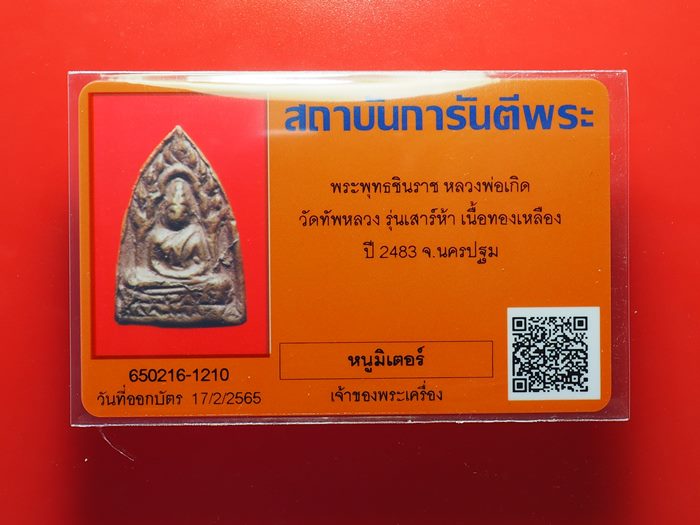 เหรียญหล่อพระพุทธชินราช หลวงพ่อเกิด วัดทัพหลวง จ.นครปฐม พร้อมบัตรรับรอง G-Pra