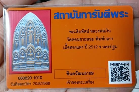 พระสิบทัศน์"พิมพ์กลาง" หลวงพ่อเงิน วัดดอนยายหอม จ.นครปฐม เนื้อทองแดง ปีพ.ศ.2512+พร้อมบัตรฯรับรองพระแท้