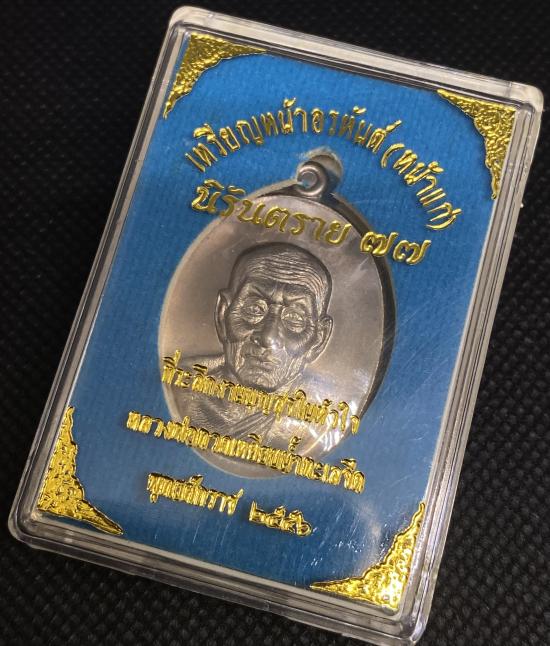 เหรียญหลวงพ่อทวดหน้าอรหันต์ (หน้าแก่) รุ่นนิรันตราย 77 เนื้ออัลปาก้าหลังแบบ ปี2556 พร้อมกล่องเดิม ซีลเดิมจากวัด