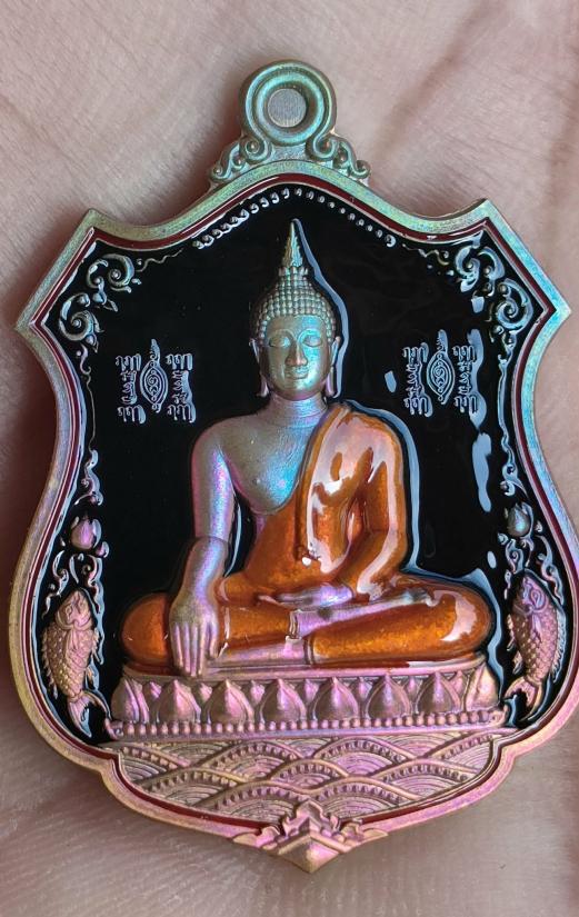 เหรียญหลวงพ่อโต รุ่น"เจริญยศ"ประวัติศาสตร์ตำรวจ๒๕๖๘ วัดบางพลีใหญ่ใน จ.สมุทรปราการ พิมพ์เหรียญอาร์ม เนื้อทองทิพย์ผิวรุ้ง ลงยาพื้นแดง ลงยาจีวร หมายเลข ๖๐๐ พร้อมกล่อง เหรียญสวยคับ เลขกลมๆสวยๆ