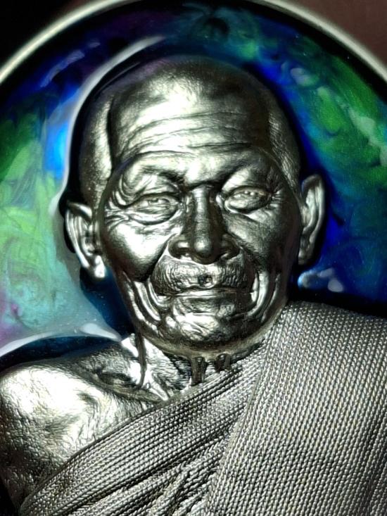 เคาะเดียว!!!ต่ำจอง!!! หลวงปู่มหาศิลา สิริจันโท เหรียญรวยรวยล้าน เทวดารักษา เนื้อเงิน ลงยาม่วงเทอควอยซ์ หมายเลข 238 มีกล่องเดิม(ราคาจอง 3,499)