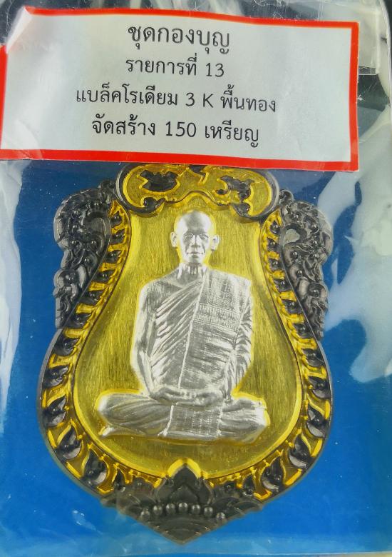 1800-เคาะเดียว เหรียญเสมาอุดมทรัพย์ พระอาจารย์ต้อม วัดท่าสะแบง ชุดกองบุญ เนื้อแบล็กโรเดียม 3k พื้นทอง เลข๓๓ เสมาใหญ่พิมพ์นิยม