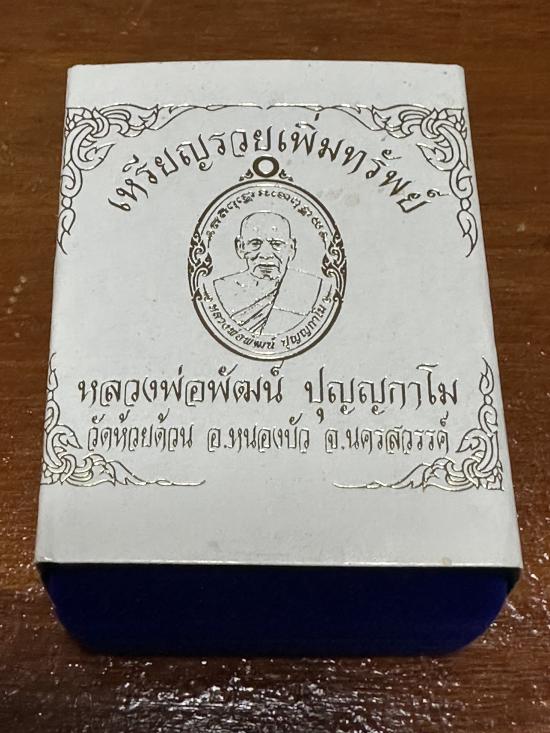 เหรียญหลวงพ่อพัฒน์ วัดห้วยด้วน รุ่น รวยเพิ่มทรัพย์ เนื้อเงินลงยา หมายเลข71 สร้าง100เหรียญ มีประสบการณ์ สภาพสวยพึ่งแกะกล่องเดิมๆ (นน. 15กรัม) เงินกำลังขึ้นราคาไปถึงกรัมละ130บาท รับประกันตามกฏ (ราคาจอง2500บาท)