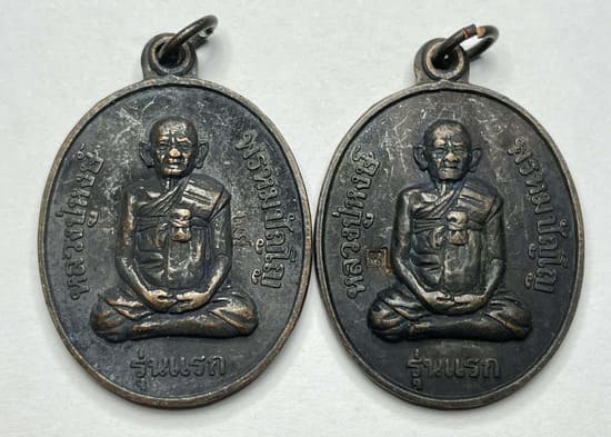 เหรียญรุ่นแรก ตอกโค็ต หลวงปู่หงษ์ พรหมปัญโญ วัดเพชรบุรี จ.สุรินทร์ เดิมๆ 2 องค์