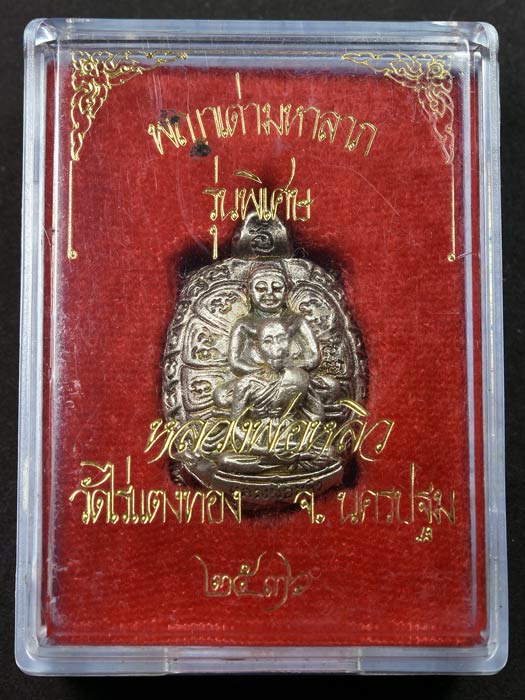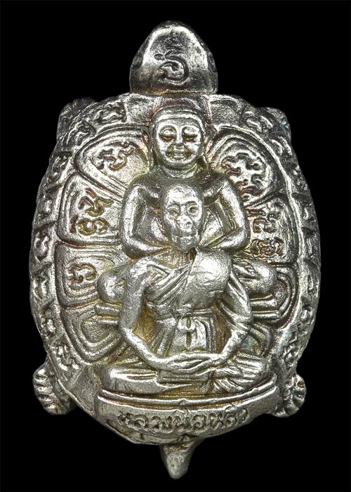 "2องค์" รูปหล่อพญาเต่ามหาลาภ รุ่นพิเศษ เนื้อเงิน + พระผงแซยิด หลวงปู่หลิว ปี36 พร้อมกล่อง