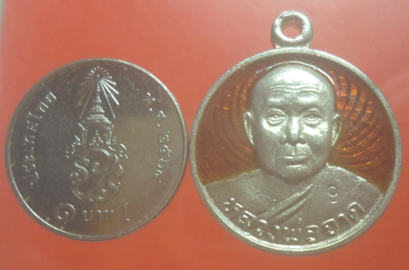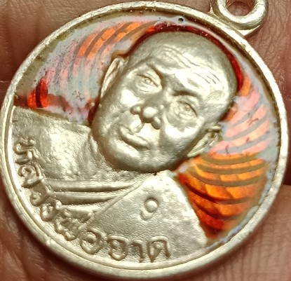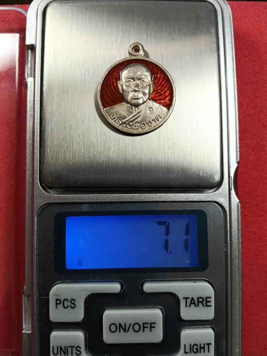 เหรียญ หลวงพ่อจาด วัดบางกระเบา จ. ปราจีนบุรี พิธีใหญ่เสาร์ 5 มหาสิทธิโชค ปี 2536 เนื้อเงิน ลงยาสีแดง หนัก 7.1 กรัม