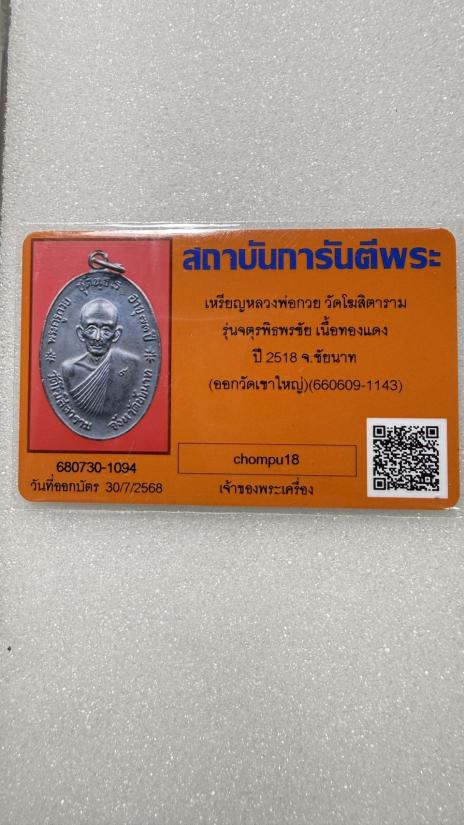 เหรียญจตุรพิธพรชัย หลวงพ่อกวย ปี2518