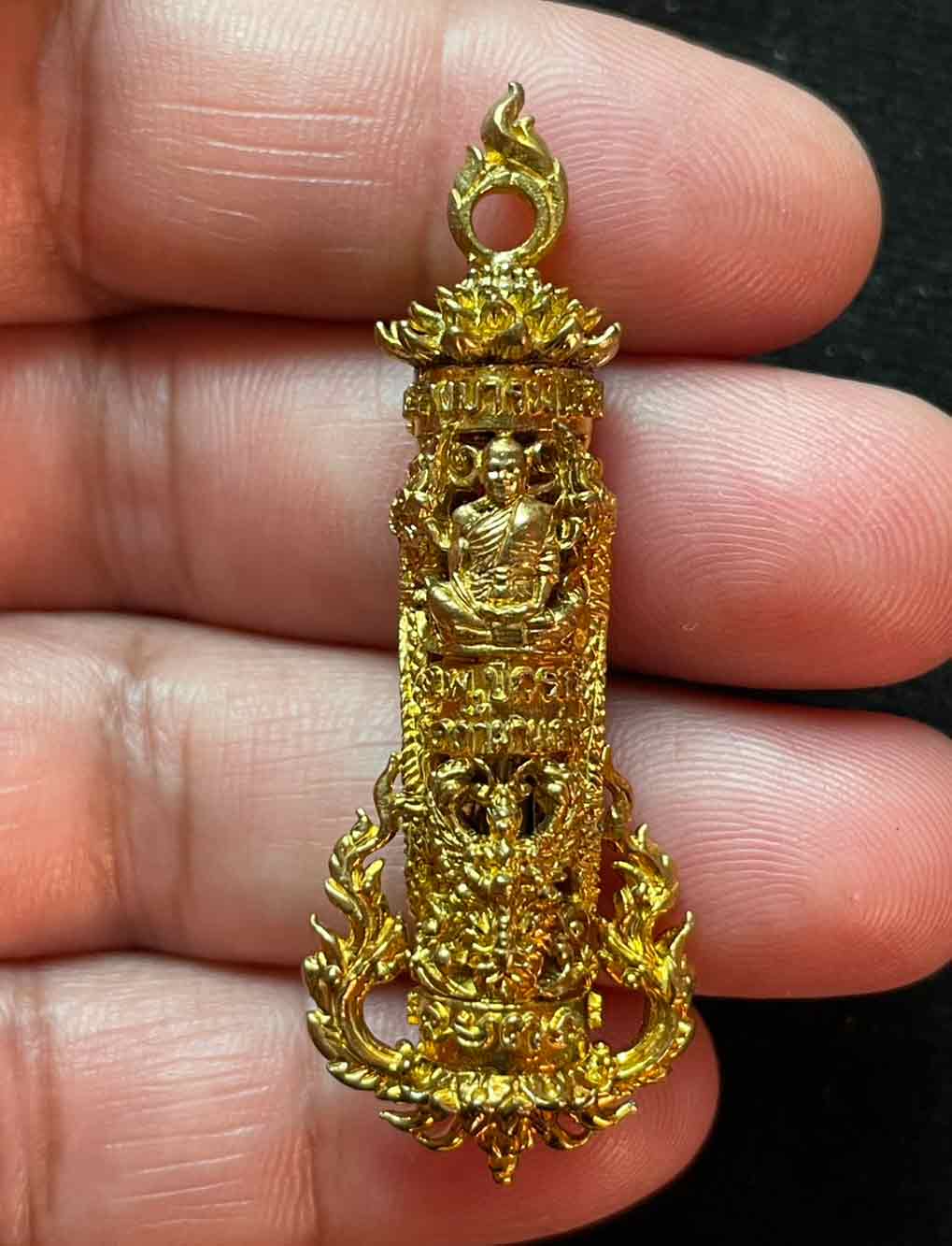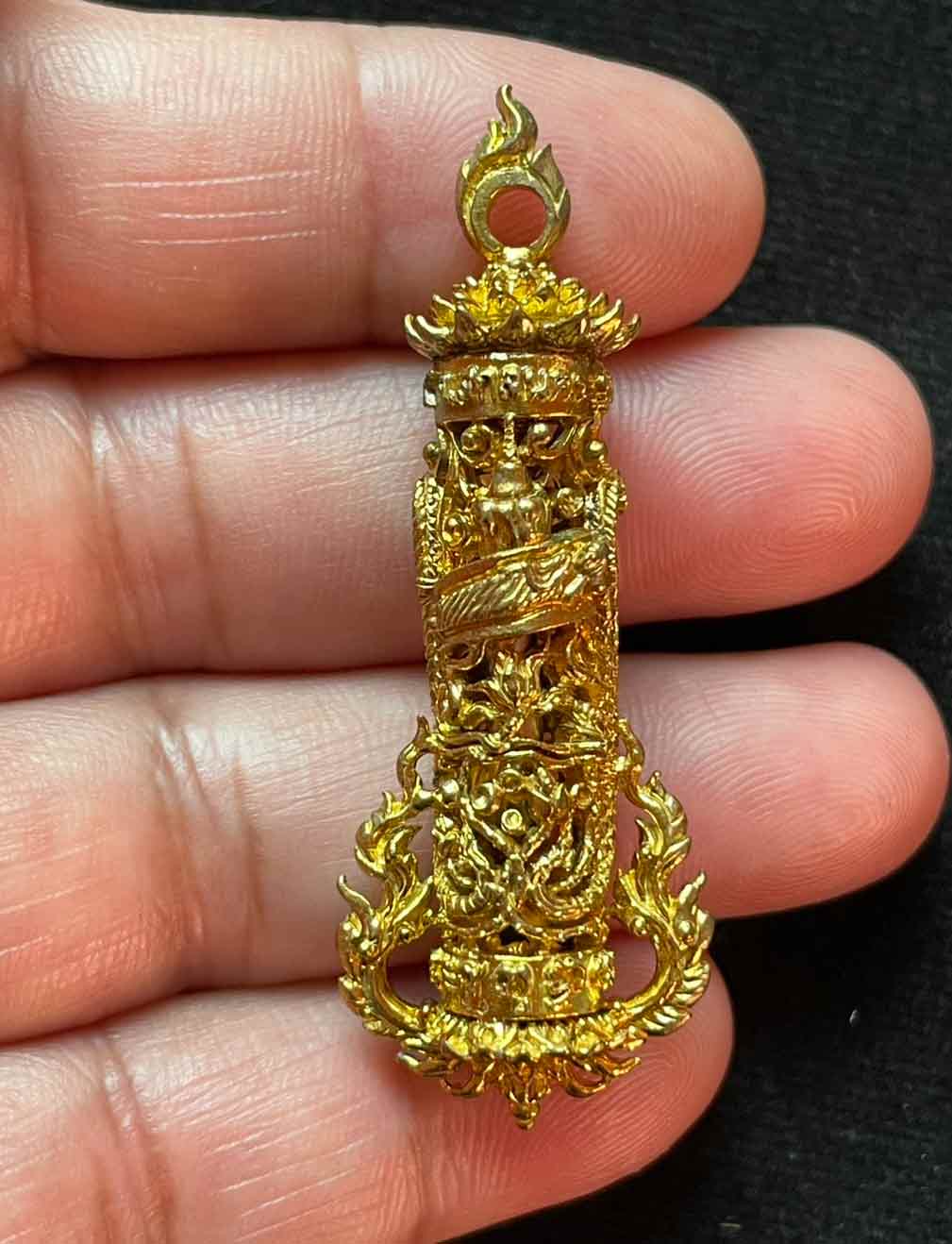 วัดใจ ตะกรุดหล่อโบราณ พญาครุฑ มีตะกรุดด้านใน หลวงพ่อปกรณ์ วัดถ้ำผาแด่น จ.สกลนคร ปี 2559 กล่องเดิม